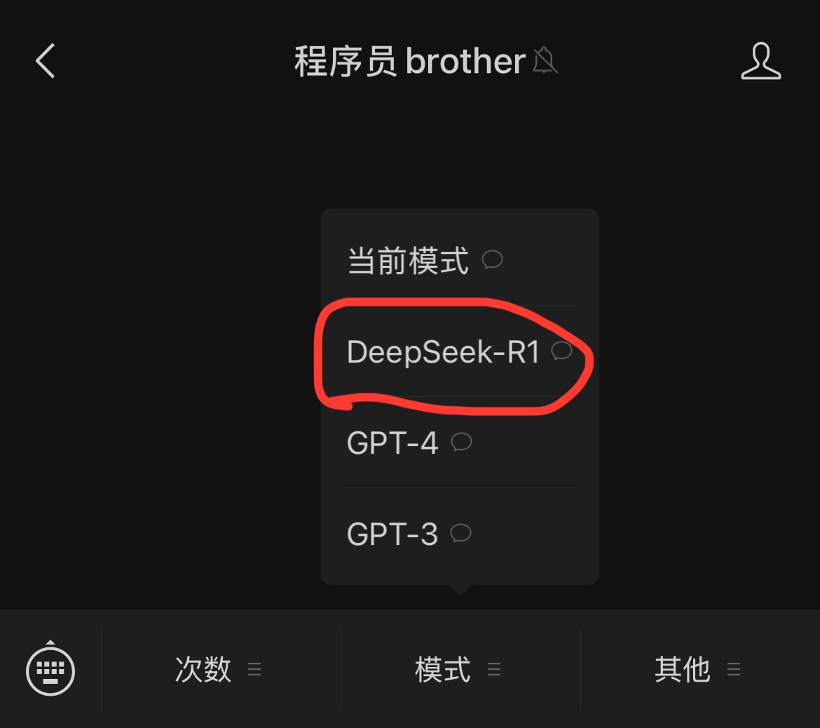 菜单栏 -> 模式 -> DeepSeek-R1